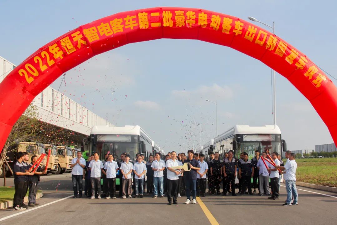 8月28日下午,“智電客車第二批豪華電動(dòng)客車批量出口韓國(guó)發(fā)車儀式”在智電客車母公司南京恒天領(lǐng)銳汽車廠區(qū)舉行。一輛輛豪華電動(dòng)客車整齊列隊(duì),身披紅花,即將奔赴韓國(guó)。