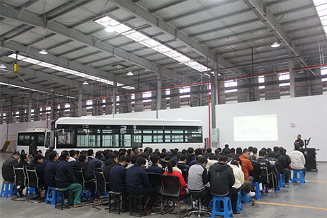 生產(chǎn)總監(jiān)劉練山進行機場擺渡車生產(chǎn)、質(zhì)量方面的對標分享